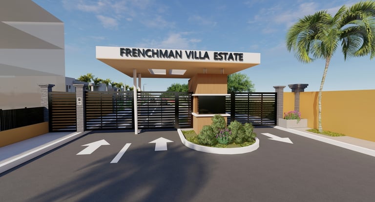 The residences boast sturdy block and steel construction complemented by a functional lean-to roof design, providing front and back patios for added outdoor space. Set within a secure gated community, Frenchman Villa Estate ensures both comfort and safety for its residents.